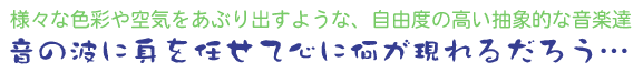 このCDに収められている曲は、特に自分なりに新しい表現へアプローチしています。決してメロディアスではないが、一つあるいは複数の時間軸上に点在する音それぞれが、独自の間をもって浮遊し、ぶつかり合い、また交錯する。 こう書くと難解な音楽を想像するかもしれないが、むしろそんな難しい話ではなく、テーマこそあるものの、ある意味単純な音の繋がりの中に、聴き手が一つとして同じものが無い、様々な色彩や空気などをあぶり出すような、そんな自由度の高い抽象的な音楽を、ここで表現したかったわけです。