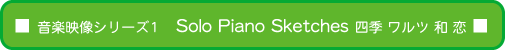Solo Piano Sketches に収録されている音楽のテーマは「四季」「ワルツ」「恋」です。そんな音楽達の情景をそれぞれに合わせた自然の風景で表現してみました。映像は風景でやさしく安らぎあるもので構成されています。小谷佳照の音楽世界は迫力と安らぎの玉手箱的なものです。そんな小谷が日常のスケッチとして作り上げた作品達は暖かく、柔らかく、力強いとても魅力的なものです。